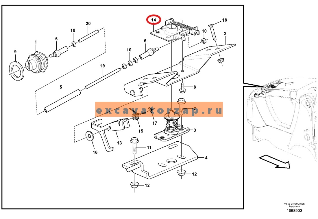 Корпус VOE11882989 замка капота экскаватора погрузчика VOLVO BL61, BL71