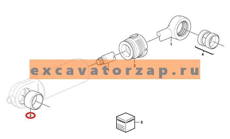 Втулка VOE17208403 в основание гидроцилиндра челюсти (нижняя, под палец диаметром 35мм) экскаватора погрузчика Volvo BL61, BL71